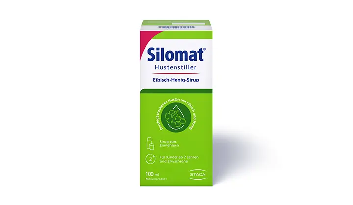 Außerdem werden bei Reizhusten hustenreizstillende Arzneimittel, wie Silomat® Hustenstiller, eingesetzt. Sie zeichnen sich durch ihre schnelle und langanhaltende Wirkung und ihre gute Verträglichkeit aus. Sie sind in verschiedenen Darreichungsformen zum Einnehmen erhältlich und je nach Produkt bereits für Kinder ab 2 Jahren geeignet.