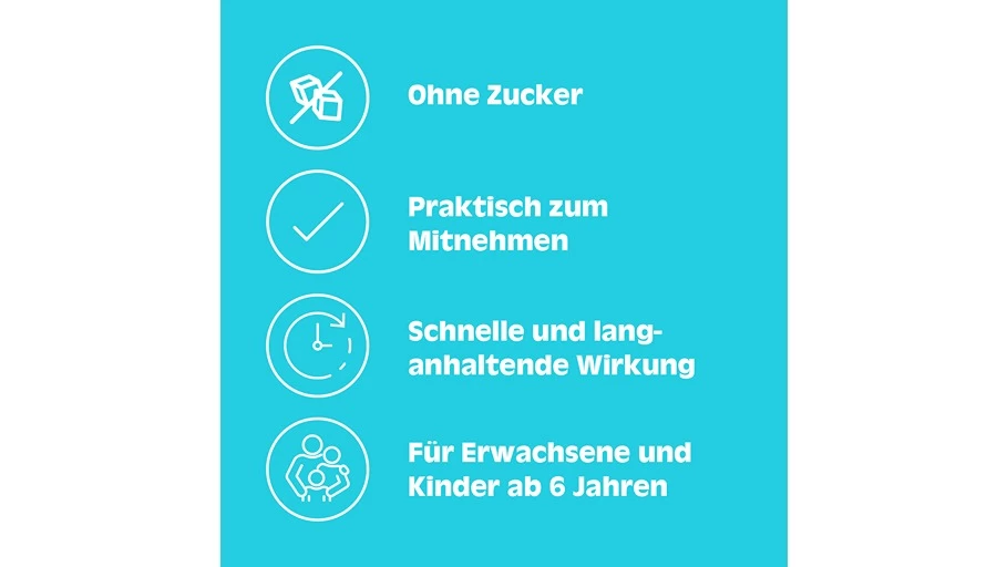 • Erste Linderung bereits durch das Lutschen möglich